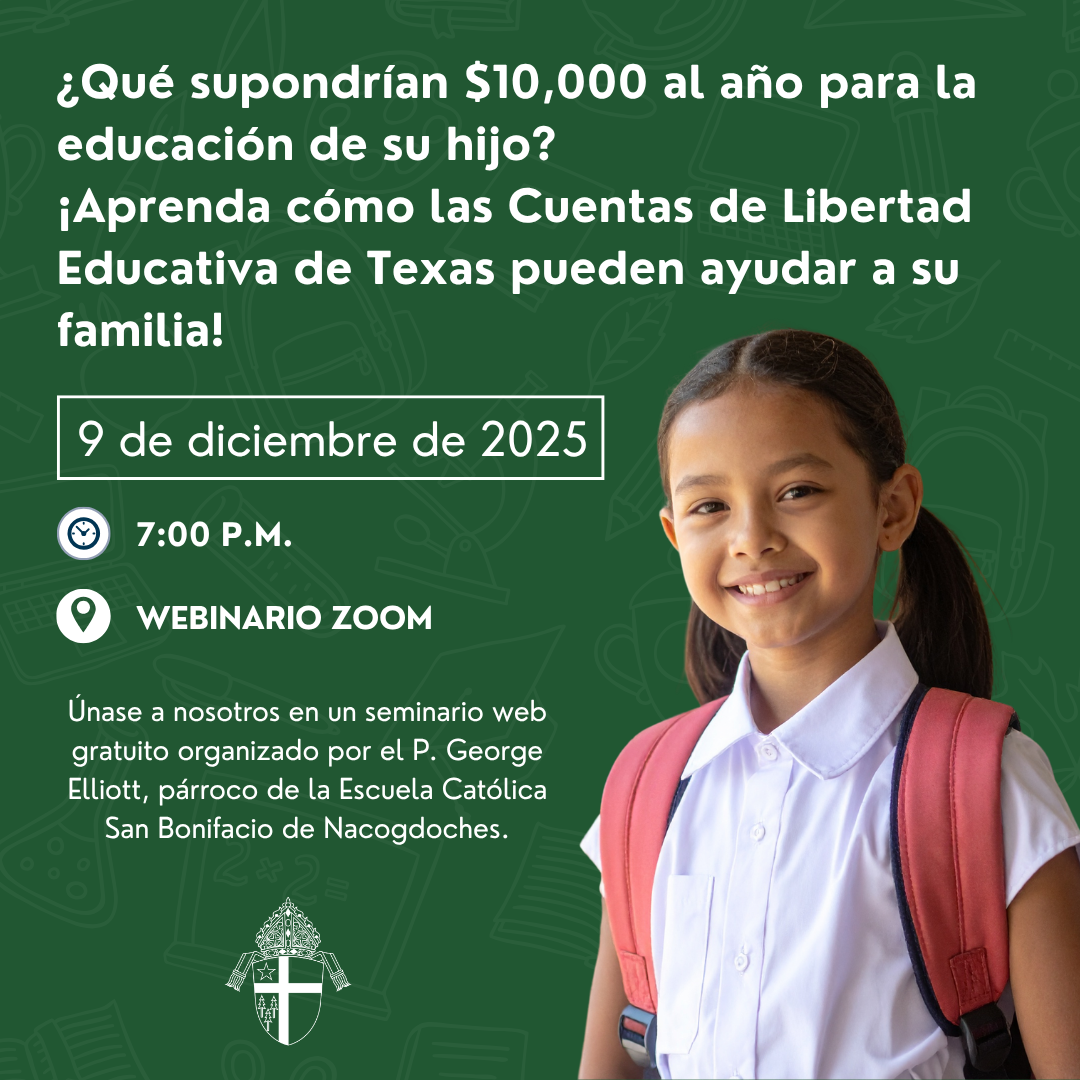 El Padre George Elliott, párroco de la Escuela Católica San Bonifacio de Nacogdoches, organizará un seminario web gratuito para analizar cómo este programa puede ayudar a su familia.